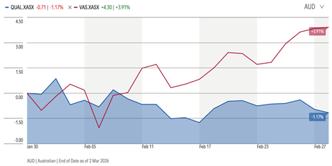 Figure 1: Australian Shares (VAS ETF) Performance over February 2026 was +3.8%