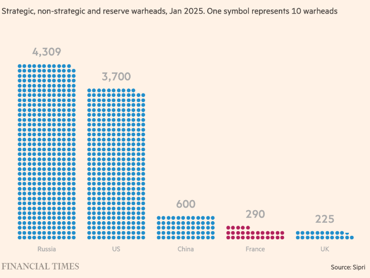 Figure 4: France's nuclear warhead stockpile is dwarfed by that of Russia and the US