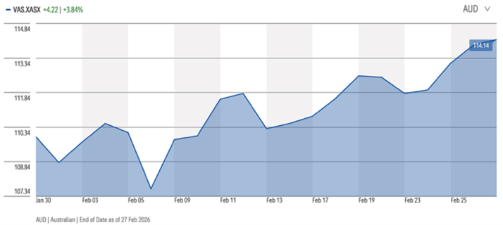 Figure 1: Australian Shares (VAS ETF) Performance over February 2026 was +3.8%